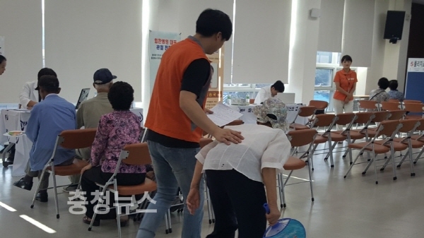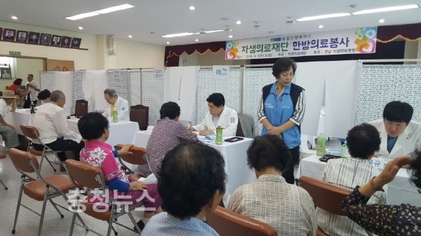 5일 농업인행복버스는 서산시 성연농협 회의실에서 자생한병병원 의료봉사단 10여명이 한방진료, 침치료, 약처방 등 200여명의 고령농업인들을 치료하고, 장수사진 촬영 및 신명나는 문화공연도 함께 진행하여 조용한 시골마을에 활기를 불어넣었다.