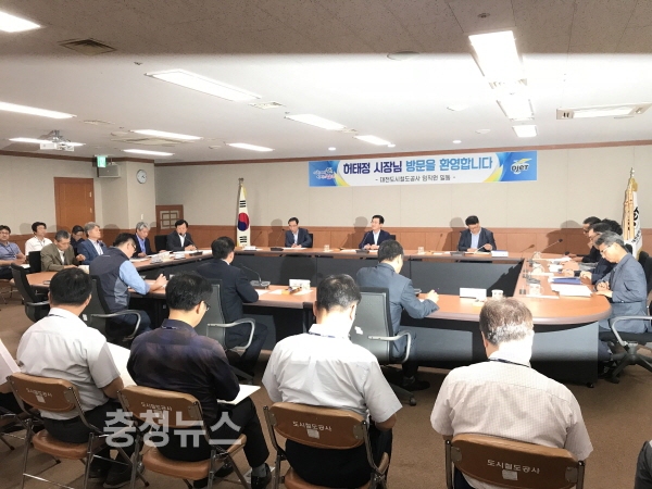 허태정 대전시장은 5일 오후 민선7기 공사․공단 초도방문의 세 번째 일정으로 대전도시철도공사를 찾았다.