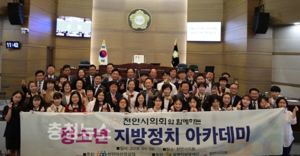 인치견 의장은 “지역의 미래를 이끌 우리 청소년들에게 의회 민주주의를 직접 경험하게 하는 것은 다가올 지방분권과 지방자치시대에 꼭 필요한 교육”이라며 “우리 의회는 이번 임시회에서 ‘천안시 어린이·청소년의회 운영에 관한 조례’를 제정해서 천안시 청소년들이 살아있는 의회 민주주의를 체험 할 수 있는 시스템을 마련할 예정”이라고 말했다.