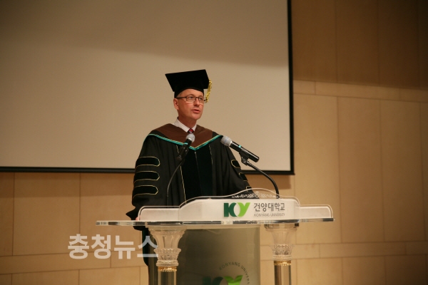 건양대학교(총장 이원묵)는 지난 6일 오후 대전 메디컬캠퍼스 죽헌정보관 리버럴아츠홀에서 건양대와 오스트리아 국립 다뉴브(Danube)대학교가 함께 운영하는 보건복지대학원 물리치료학과 복수학위과정 5주년 기념식 및 학위수여식을 개최했다.