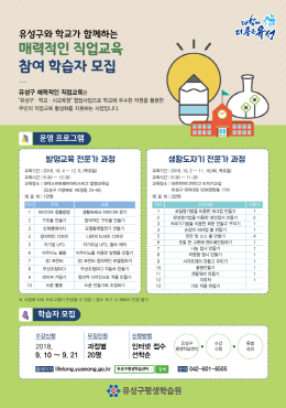 대전 유성구(구청장 정용래)는 다음달 2일부터 오는 12월 6일까지 관내 특성화 고등학교의 우수한 자원을 활용해 주민 대상 직업교육을 운영한다고 7일 밝혔다.