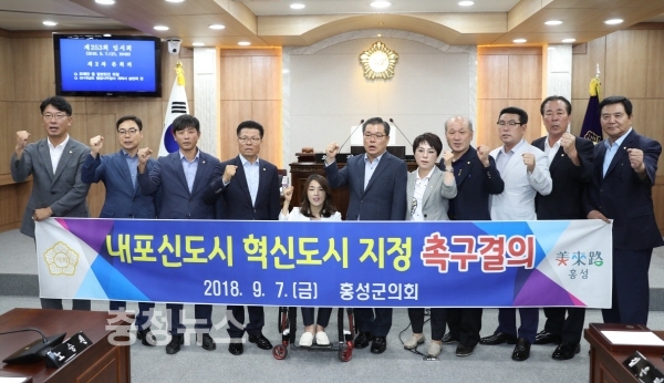 충남 홍성군의회가 7일 '내포신도시 혁신도시 지정을 촉구 결의안'을 통해 충남도에서 세종시 분리에 따른 인구 감소, 경제발전 소외 등의 문제점을 지적하고 정부의 적극적인 검토를 요구했다.