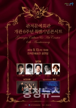 대전 서구(구청장 장종태) 관저문예회관은 개관 6주년을 맞아 주민과 함께하는개관 6주년 특별기념콘서트』를 개최한다.
