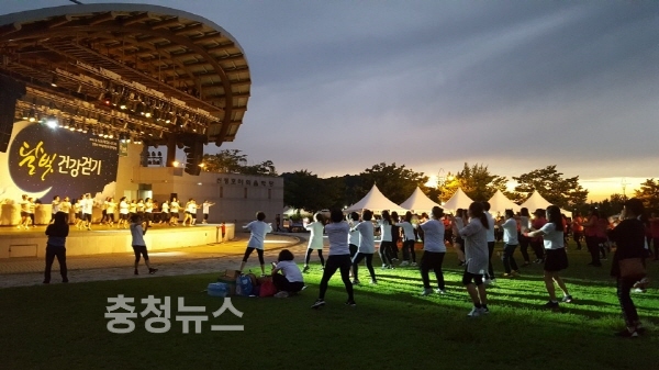 충남 아산시보건소(소장 김은태)가 지난 6일 일상생활에서 쉽게 실천할 수 있는 걷기운동의 확산 분위기 조성을 위해 신정호 국민관광단지 일원에서 ‘달빛건강걷기’행사를 개최했다.