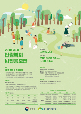 산림청 한국산림복지진흥원(원장 윤영균)이 전국의 산림복지시설을 국민들에게 널리 전파하고 이용을 활성화하고자 ‘제1회 산림복지 사진 공모전’을 개최, 내달 1일까지 공모한다고 11일 밝혔다.