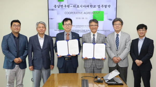 충남연구원은 11일 연구원에서 일본 히로시마대학교 국제협력대학원과 상호 교류를 위한 업무 협약을 체결했다.