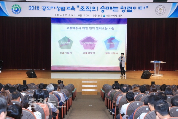 대전 서구청 대강당에서 진행한 청렴교육 모습
