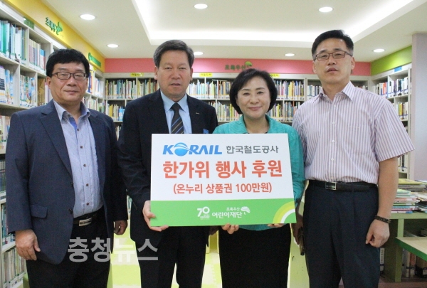 코레일 대전기관차 승무사업소(소장 임승수)는 추석을 맞이해 13일 초록우산어린이재단 대전종합사회복지관(관장 유미)에 100만원 상당 온누리상품권을 전달했다.