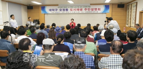 대전 대덕구(구청장 박정현)가 13일 오정동행정복지센터에서 지역주민, 한남대 관계자 등 50여명이 참석한 가운데 ‘북적북적 오정&한남 청춘스트리트’ 도시재생 뉴딜사업 주민설명회를 가졌다.