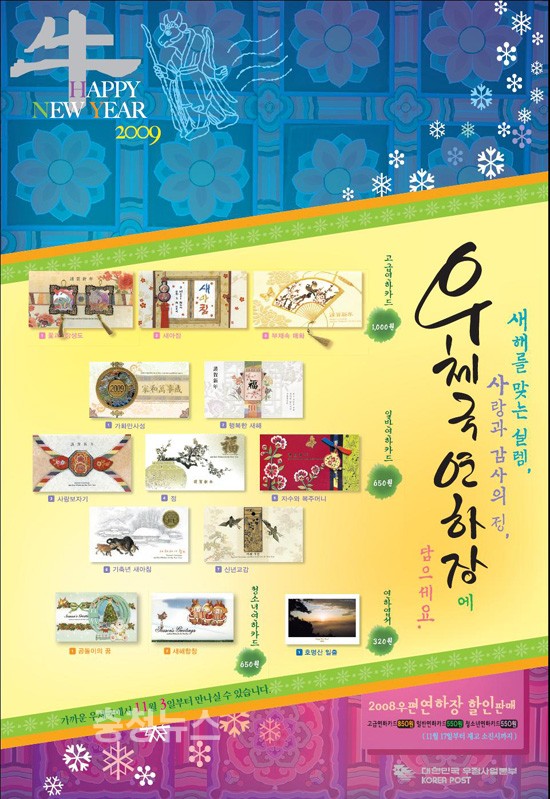 지식경제부 충청체신청(청장 김 호)이 기축년 새해를 맞아 사랑과 감사의 ‘2009년 우편 연하장’을 판매 중이다.