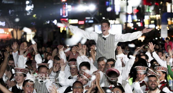 천안의 명소인 천안터미널 앞 8차선 도로 위에서 펼쳐지는 거대한 춤행렬 ‘거리댄스퍼레이드’는 14일 오후 6시 30분 방죽안 오거리부터 신세계백화점까지 0.55km 구간에서 국내‧외 32팀, 1700여명이 참가해 이중 24팀이 열띤 경연을 펼친다.