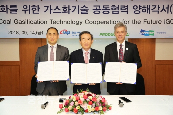 한국서부발전(사장 김병숙)은 14일 더케이호텔서울(양재)에서 Air Products & Chemicals, 두산중공업과 석탄화력 대체가 가능한 “차세대 친환경 고효율의 대용량 IGCC를 위한 가스화기술 분야 공동협력 양해각서(MOU)”를 체결했다고 밝혔다.