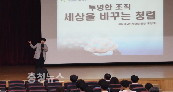 이어 어울림교육개발원 배정애 원장이 청렴 실천을 위한 공직자의 기본소양과 자세, 청탁금지법 주요사례 및 공직자 행동강령 등을 사례 중심으로 알기 쉽게 설명하며 참석자들의 공감대를 형성했다.