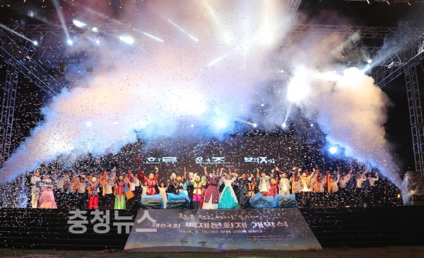 제64회 백제문화제가 지난 15일 부여군 구드래 일원에서 화려한 개막식을 갖고 9일간의 일정에 돌입했다.