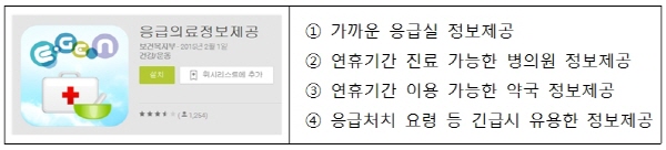 추석 연휴기간 필요한 정보 중 하나인 병원 진료와 약국 운영현황은 시 홈페이지에 게시할 예정이며, 이와 별도로 보건복지부에서 제공하는 ‘응급의료정보제공” 어플을 사용할 경우, 본인의 위치에서 가까운 병원이나 약국 찾기가 용이하므로 스마트폰 사용자는 반드시 설치해 활용하도록 권고했다.