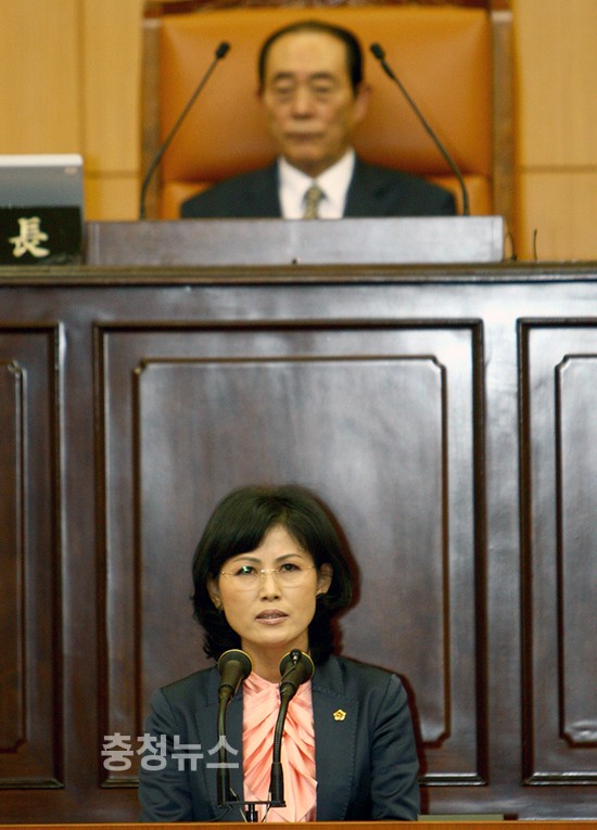 ▲ 김인식(민주당,비례대표)시의원이 27일 박성효시장을 상대로 시정질의하고 있다.