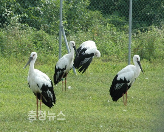 황새 6마리는 천연기념물 199호이며 CITES 1급. 시베리아와 한국 등이 원산지였으나 우리나라에서는 1970년대 이후 야생에서는 거의 사라진 희귀종으로 최근에 천수만과 전남 주남저수지에서 불규칙적으로 겨울철에 5 ~ 10마리가 관찰되고 있다. 세계적으로도 1천마리 미만이 남아있으며 환경부의 복원대상 동물로 지정돼 있다.