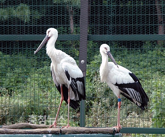 검은머리흰따오기 2마리는 저어새과에 속하는 조류로 한국, 대만, 일본 등의 습지에 서식한다. 우리나라에서는 1983년에 제주도에서 관찰된 이후 발견되지 않고 있다. CITES 1급.
