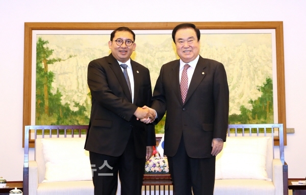 문희상 국회의장은 21일 오전 의장접견실에서 파들리 존(Fadli Zon) 인도네시아 하원부의장의 예방을 받았다.