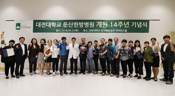 대전대 둔산한방병원은 27일 오후 신관 컨퍼런스홀에서 교직원 100여명이 참석한 가운데 개원 14주년 기념식을 개최했다.