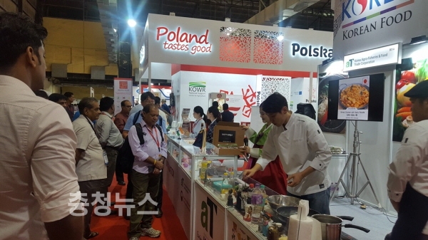 이번 한국관은 18개 수출업체가 참가해 라면과 떡볶이 등의 즉석식품과 비타민, 기능성 드링크 등 건강기능식품을 선보이며 인도의 젊은 중산층에게 확산되고 있는 간편식과 건강한 식문화 트렌드를 중심으로 인도 시장을 공략하고 있다.