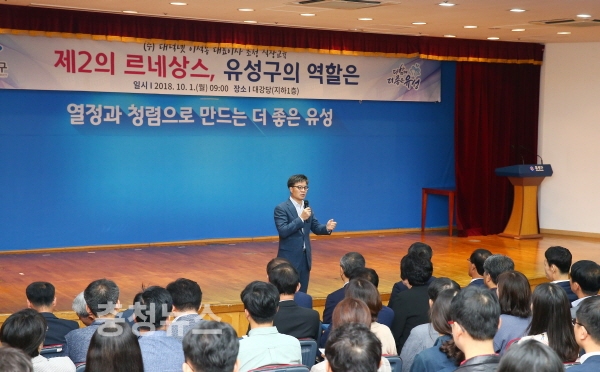 강의에 앞서 정용래 구청장은 “4차산업혁명시대를 맞아 유성구가 해야 할 역할에 대해 고민하는 시간을 갖고자 마련한 자리”라며, “오늘의 특강이 유성구가 대덕특구와 함께 문제를 푸는 과정의 시작”이라고 말했다.