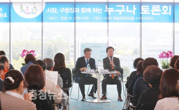 허태정 대전시장은 2일 유성구에서 ‘누구나 토론회’ 일정을 시작했다.