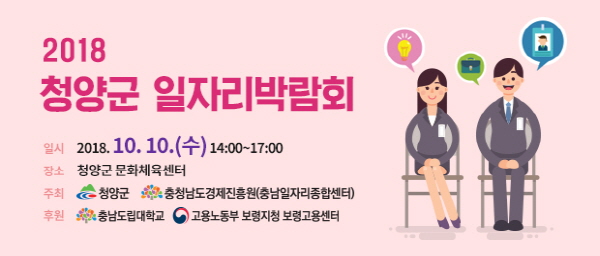 충남 청양군(군수 김돈곤)은 충청남도경제진흥원 일자리종합센터, 충남도립대학교, 보령고용센터, 청양고등학교와 공동으로 오는 10일 청양군 문화체육센터에서 ‘2018 청양군 일자리박람회’를 개최한다.