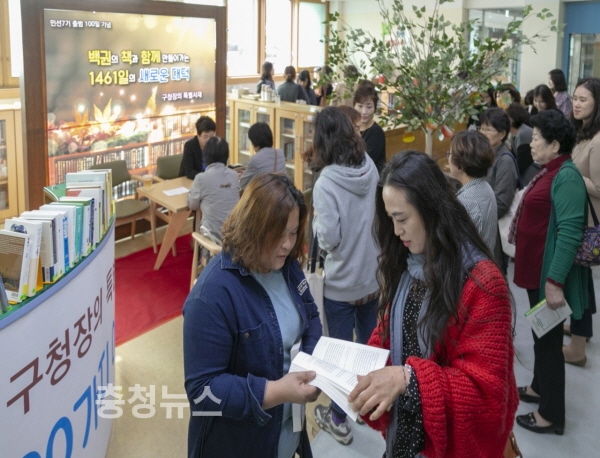 아울러, “구정에 관심을 갖고 책을 빌려 가신 모든 분들과 100일 뒤에 다시 만나 대덕구가 나아갈 방향에 대해서 교감을 갖는 시간을 가질 계획”이라고 말했다.