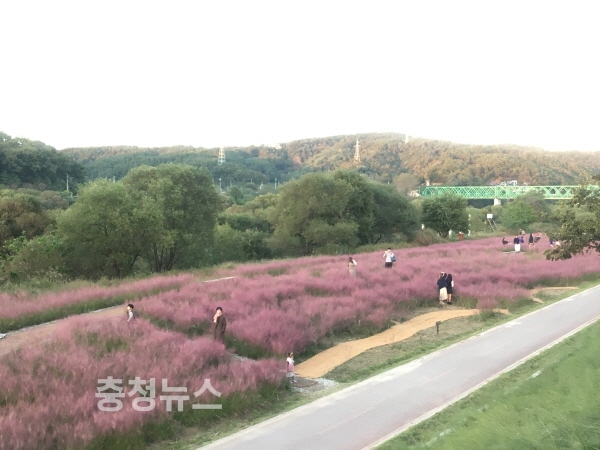 10일 대전시 하천관리사업소에 따르면, 작년 4월부터 올해 6월에 걸쳐 핑크뮬리 16만본 외 구절초, 에키네시아, 샤스타데이지, 억새 등 초화류 6만여 본을 식재하고 각종 편의시설을 설치해 보고 느끼고 즐길 수 있는 초화단지를 조성했다.