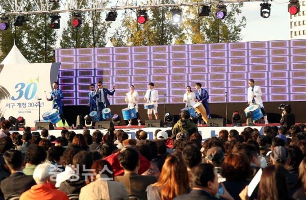 이날 행사는 브라질 특유의 흥과 리듬을 느낄 수 있는 ‘라퍼커션’의 화려한 퍼포먼스를 시작으로 내빈소개, 구민 헌장 낭독, 자랑스러운 서구인상 표창, 서구 균형발전 추진상황 보고, 도시브랜드 슬로건 선포식과 축하 공연으로 참석 구민에게 행복을 선사한 기쁨의 장이 되었다.