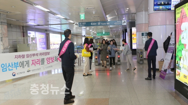대전도시철도공사(사장 김민기)는 10일 시청역과 열차 안에서 인구보건협회, W여성병원과 합동으로 임산부 배려 캠페인을 벌였다.