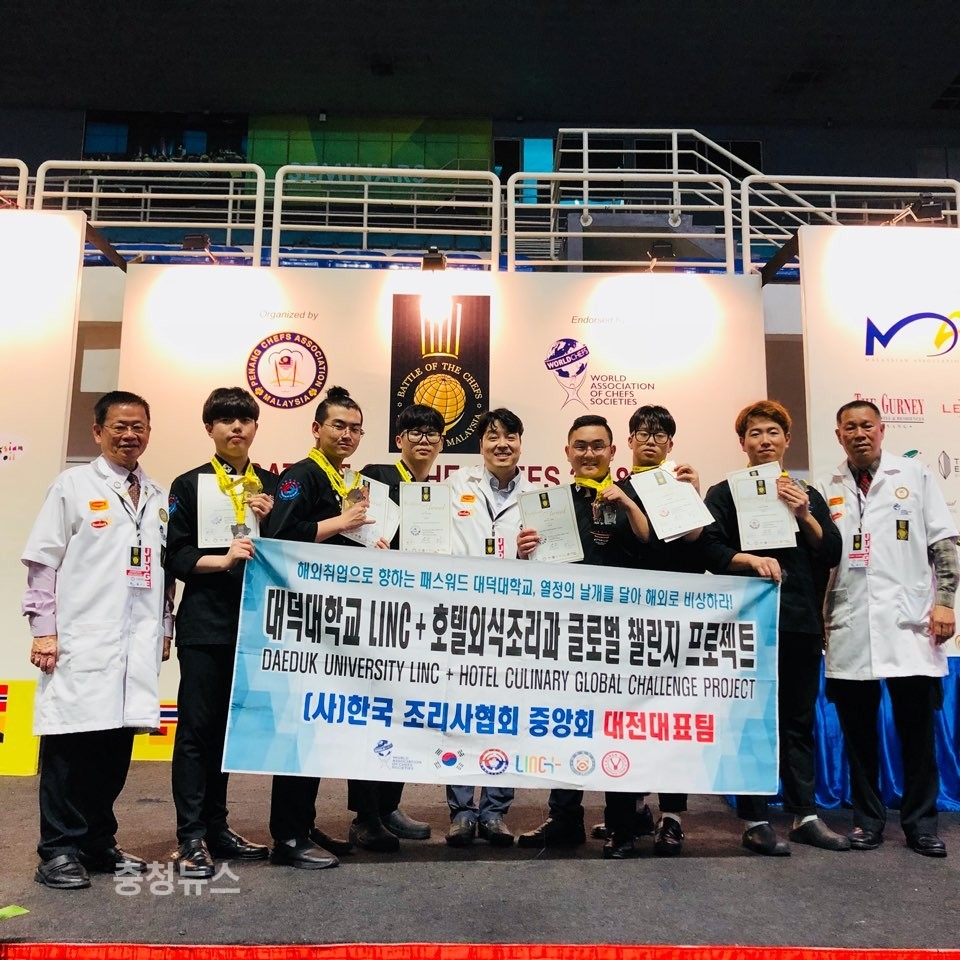 대덕대학교 호텔외식조리학과 학생들이 말레이시아 국제요리 경연대회서 전원수상의 성과를 거뒀다.