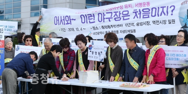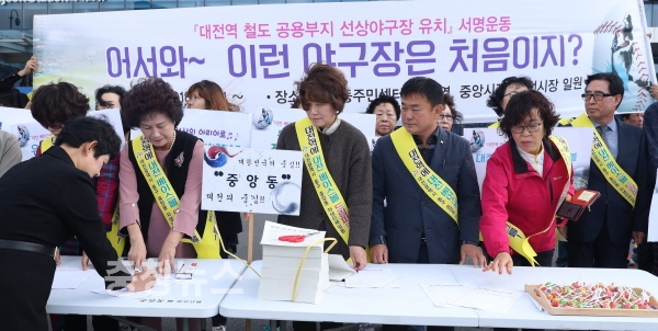 10일 대전역 서광장에서 선상야구장 유치 서명운동 등 곳곳에서 염원 표출