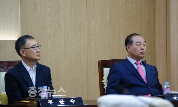 예산군의회 제244회 임시회에 참석한 황선봉 예산군수(우측)와 이상용 부군수