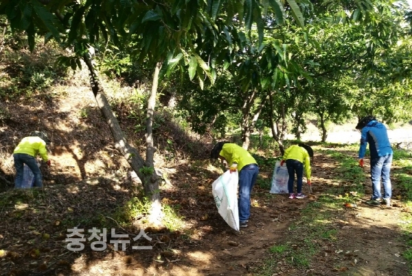 세종특별자치시 한솔동(동장 김미숙)이 10일 가을 영농철을 맞아 자매결연 한 장군면 밤 재배 농가를 찾아 농촌 봉사활동을 펼쳤다.