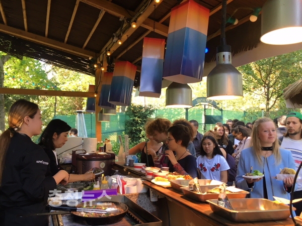 야외에 조성된 한식레스토랑에서는 막걸리와 전, 제육볶음 등 한국 음식을 맛보기 위한 줄이 끊이지 않았으며 파리 가을처럼 붉게 물든 한국 전통주와 막걸리로 만든 칵테일도 현지인들의 많은 사랑을 받았다.