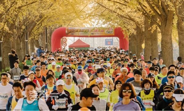 아산의 명소 현충사 은행나무길에서 마라톤대회가 다음달 11일 열린다.