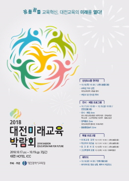 대전시교육청(교육감 설동호)은 17일부터 19일까지 3일간, 대전 HOTEL ICC 3층에서 대전미래교육박람회’를 개최한다고 12일 밝혔다.