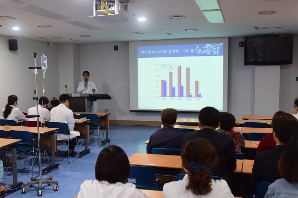 을지대병원은 16일 오전 병원 2층 세미나실에서 ‘두통 건강강좌‘를 개최했다. 이날 강좌에서 김재국 신경과 교수가 현대인의 두통 인과 진단, 치료법 등에 대해 강의와 함께 질의응답을 진행했다. 저작권자 © 충청뉴스 무단전재 및 재배포 금지 송연순 기자 다른기사 보기 기사가 마음에 드셨나요? 충청뉴스 좋은 기사 후원하기 1,000원 3,000원 5,000원 10,000원 30,000원 50,000원 직접입력 비회원 약관동의하기 ※ 소중한 후원금은 더 좋은 기사를 만드는데 쓰겠습니다.
