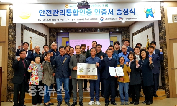 한국식품안전관리인증원(원장 장기윤, 이하 HACCP인증원)은 17일 논산계룡축협(충남 논산) 대회의실에서 임영봉 조합장에게 안전관리통합인증 적용 인증서를 증정했다.