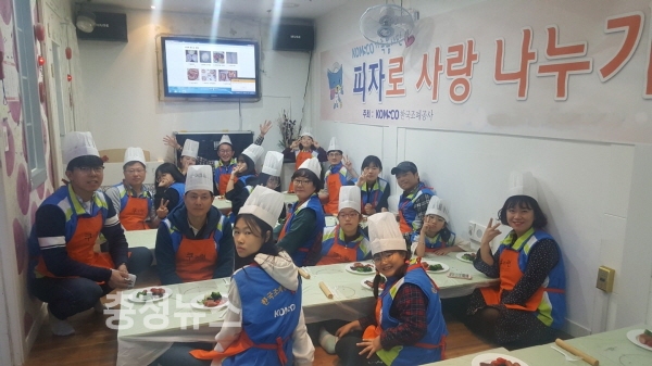 한국조폐공사(사장 조용만)는 지난 21일 대전시 서구 내동에 있는 요리체험교실 쿠키런에서 ‘피자로 사랑나누기’ 가족봉사단 활동을 펼쳤다.