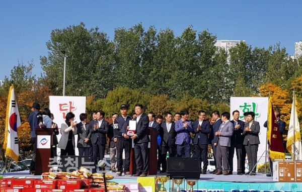 한국노총천안지역지부는 종합운동장 일원에서 개최한 체육대회 자리에서 그동안 노동이 존중되는 사회 실현을 위해 열정적인 의정활동을 펼친 공적을 기리기 위해 공로패를 수여했다.