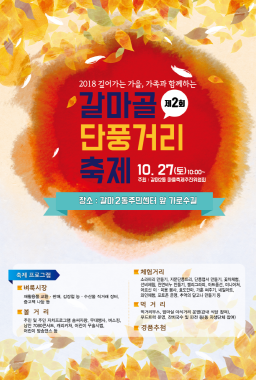 대전 서구 갈마2동은 27일 갈마2동 주민센터 인근 단풍 가로수길 및 소광장에서 ‘제2회 갈마골 단풍거리 축제’를 개최한다.