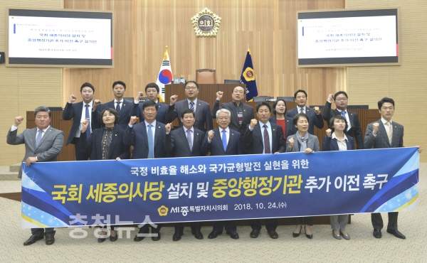 세종시의회는 결의안에서 “세종시가 42개의 중앙행정기관과 19개 공공기관이 이전 완료함에 따라 대한민국의 실질적인 행정수도 기능을 하고 있지만, 국회가 서울에 위치하고 있어 국정 운영의 비효율 문제가 끊임없이 제기되고 있다”며 “이에 국회는 세종의사당 건립을 위한 용역을 연내 실시하고 세종의사 설치와 미 이전 중앙행정기관을 추가 이전하라”고 촉구했다.