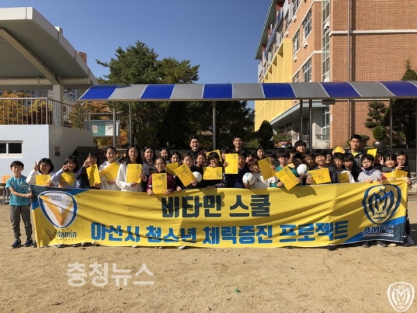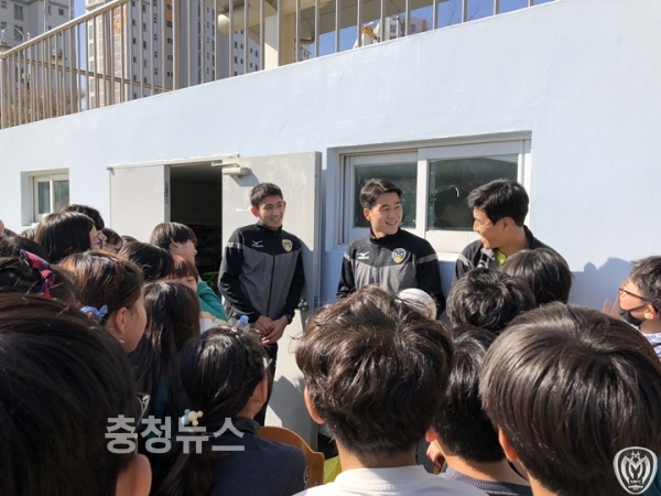 아산무궁화프로축구단(구단주 오세현)이 서울이랜드FC와의 원정 경기를 앞두고 연화초등학교(이하 연화초)를 방문했다. 이날 연화초 비타민스쿨에는 구대영, 김봉래, 조성준이 참가하며 프로그램에 활기를 더 했다.