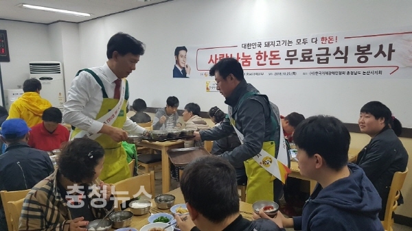 축산 나눔행사는 지난 25일 논산시에 있는 한국지체장애인협회 구내식당에서 회원들을 대상으로 돼지고기 수육 등을 제공하며 급식봉사활동을 펼쳤고,