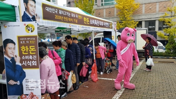 26일에는 충남농협 직거래장터(대전시 중구 대사동)에서 한돈 소비촉진행사를 열어 앞다리살, 사태 등 돼지고기의 다양한 부위를 이용한 구이용 및 저지방 부위 무료 시식행사를 개최했다.