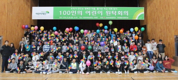 대전비래초등학교(교장: 이민자)와 초록우산어린이재단 대전종합사회복지관(관장: 유미)은 26일 대전비래초등학교 6학년 100여명을 대상으로 100인의 어린이 원탁회의를 개최했다.