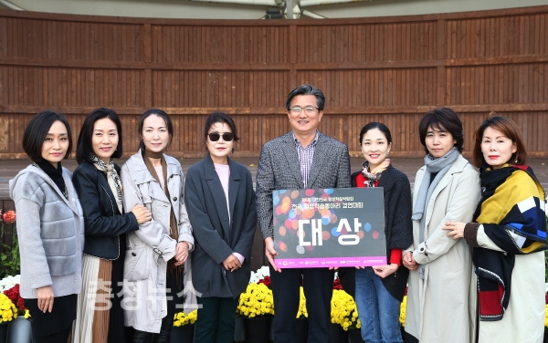 지난 26일 제6회 대한민국 평생학습박람회 동아리 경연대회에서 대상을 수상한 ‘예누림’ 회원들이 정용래 유성구청장과 기념촬영